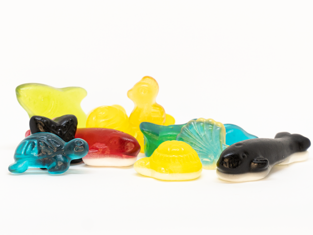 Hier ist ein dicker Fang in die Tüte gegangen - Wale, Krabben, Haie, Heringe, Tintenfische, Muscheln und vieles mehr - garantiert fruchtig duftend.